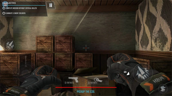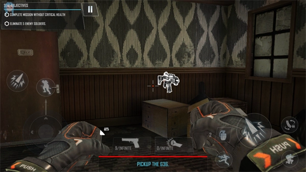 3、在场景中寻找并拾取枪械,借助武器保护自己,尝试逃离当前建筑。