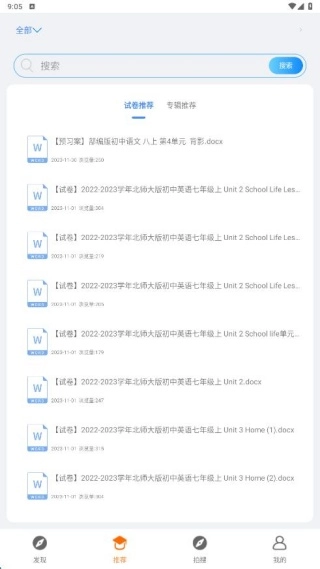 2、推荐页面集合了大量试卷素材,模拟题与真题皆可在此查看。