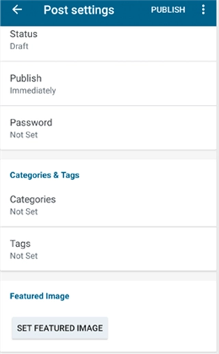 5、此操作会打开帖子设置菜单。在此菜单中,您能够添加类别与标签、挑选精选图像、更改帖子状态以及进行其他相关选项的设置。