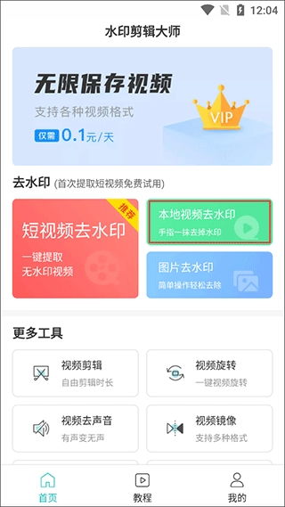 1. 启动软件,进入首页,于页面上查找并点击“本地视频去水印”功能模块。