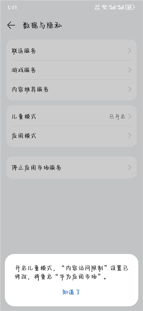 2、进入“个人中心”,点击“设置”,找到“数据与隐私”中的“儿童模式” 。