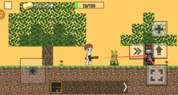 2、点击左边的按钮控制角色移动,点击右侧下方按钮可以对敌人发起进攻。