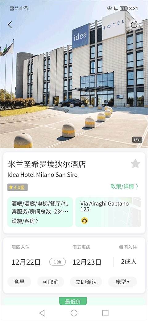 3、在酒店详情页里,任意点击一间感兴趣的客房查看信息;