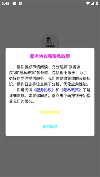 1、打开软件,阅读用户隐私协议之后点击同意并继续。