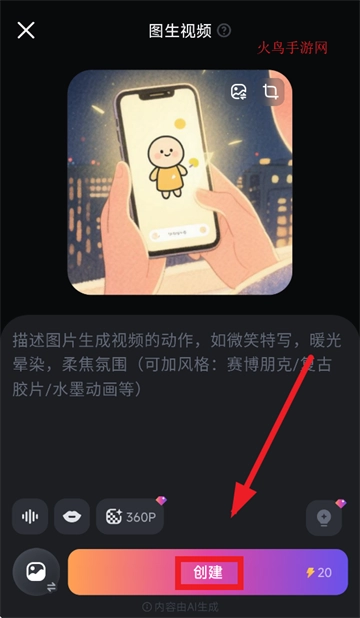 进行图片生成视频的操作时,先挑选并设定好视频参数,随后点击创建按钮就能完成。
