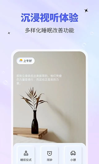 1、助眠效果佳:借助专业音频和科学催眠技术,能快速引导进入放松状态,有效缓解失眠。