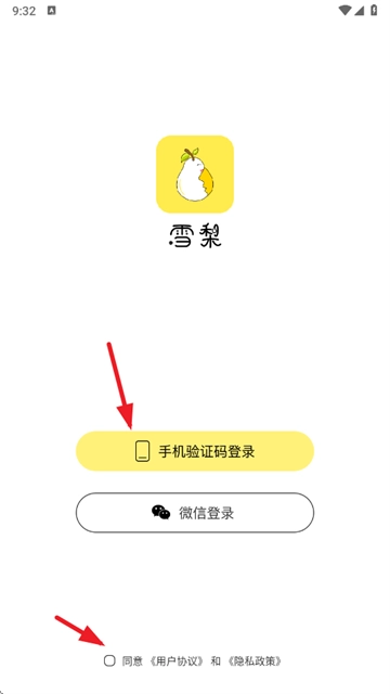 3、轻点手机号登录选项,并勾选用户协议以及隐私政策。