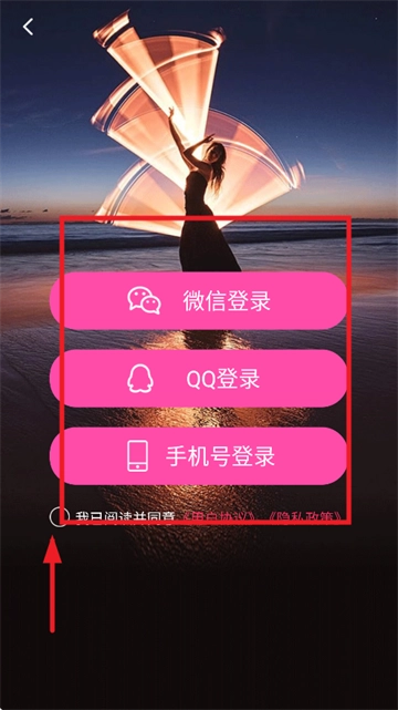 3、挑选一种自己钟爱的登录方式,务必勾选用户协议与隐私政策。