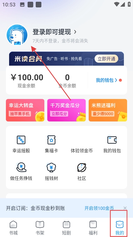 1、点击我的,进入个人页面,点击登录即可提现进去登录。