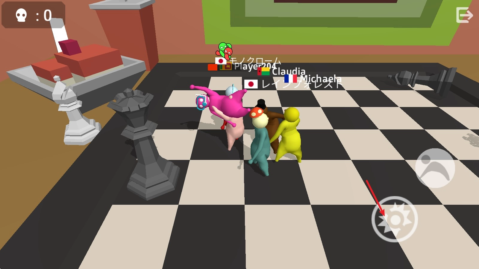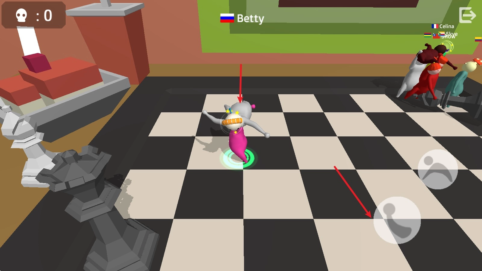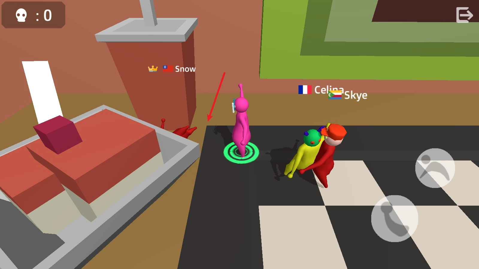 2、当靠近其他玩家时,点击右侧的举起按钮,把握好时机,便可将对手举起。