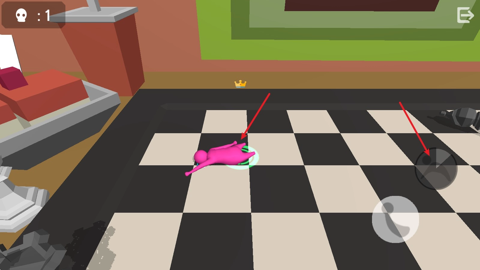 3、举起物品后,移步至场地边缘,再次点击“举起”按钮,就能把物品扔出去。