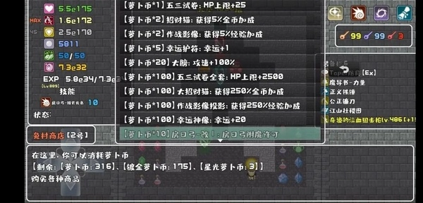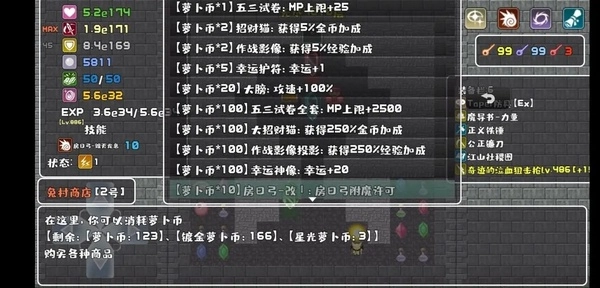 如图1所示,我当前拥有的萝卜币数量分别是123和166 。图2展示的是我将10层全部刷完后的萝卜币数量,为280和174 。相比之前,分别增加了157和8 。这意味着,在全刷的情形下,每10层瑞比小怜大约能实现157×2.5% = 3.925倍的经验加成提升,以及8×5% = 0.4的灵魂倍率提升。再看图3,这是我冲击10层后的萝卜币数量,为316和175 ,相较于图2分别多了36×2.5% = 0.9倍的经验加成提升,以及0.05的灵魂倍率提升。那么,这样的提升幅度究竟有多大呢?