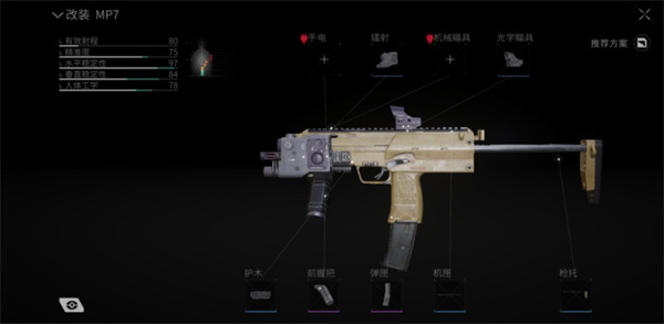 在冲锋枪武器里,MP7堪称最好用的一款。它不仅有着低后座、射速快的优点,而且其配件售价相当低廉,很容易就能实现满配。所以平民玩家也能毫无压力地获取它投入战斗。要是大家有需求,记得赶紧把海蒂商店提升到三级,如此一来,我们就能购买到MP7啦。