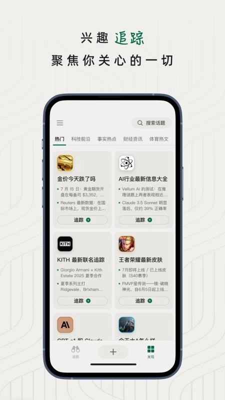 输入你想看的话题,AI 自动帮你追踪新动态。