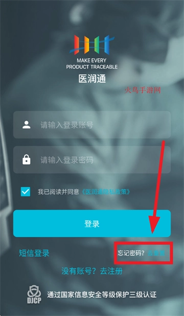 打开医润通,进入登录界面后,点击“忘记密码”,进行密码重置。