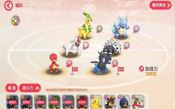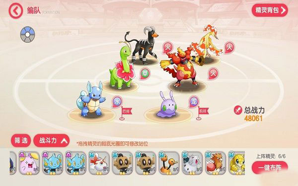 站位分为前排和后排,一排3个精灵。