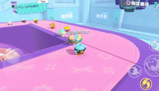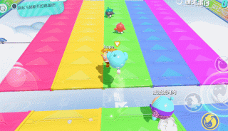 除了跑、跳、飞扑这些基础动作外,我们还能启用一种类似技能的“滚蛋”模式。一旦激活,蛋仔会化作圆球向前滚动,速度颇快且可以跳跃。不过,碰撞后会产生较大反弹,因此建议大家在障碍物较少的场景使用,像竞速赛的直道,或者快速通过机关地板时就很适用。