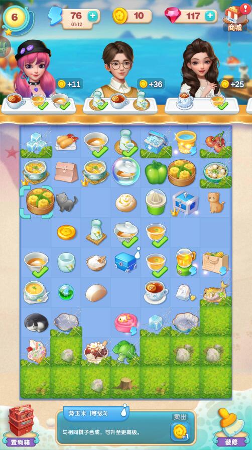 趣味二合一的简单合成玩法,快速上手,动动手指即可合成美食,完成顾客订单,轻轻松松攒足金币,修复餐厅,休闲养成不卡关!