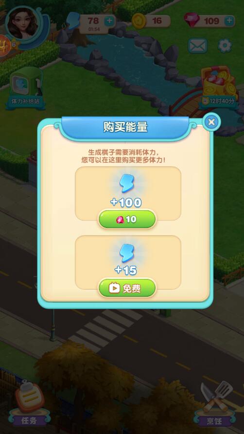 3、如下图,我们可以通过钻石购买体力,也可以通过观看免费的视频获得体力