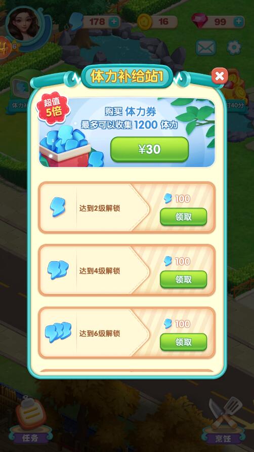 4、如果是小氪玩家的话,还可以进入到体力补给站,升级指定的等级后可以在这里领取免费体力