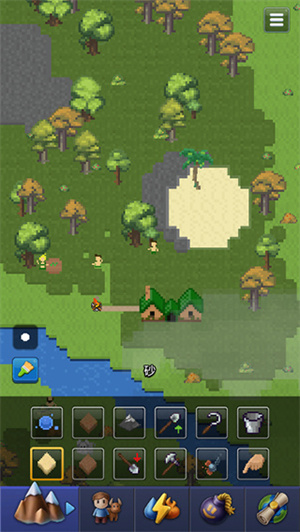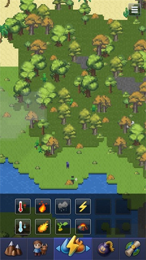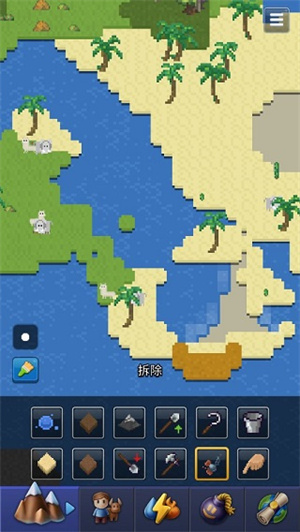 1《上帝模拟器》这款手游采用2D像素美术风格,整体画面简约。游戏上手几乎没有前置铺垫与大量引导,玩家直接置身于随机生成的世界。此世界中,海洋、陆地一应俱全,时不时还能看到喷发的火山,颇具真实感。玩家通过手机放大屏幕,便可清晰展现地形地貌的细节,如此设计十分巧妙。