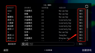 3、这里有很多的房间,玩家可以选择一个人没有满的房间,点击右方的【加入】;