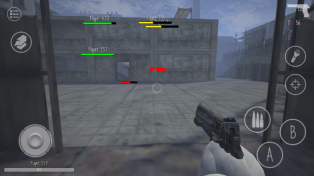 4、当满员后,就可以开始游戏了;左方是控制人物的移动,而右边则是攻击、瞄准、跳跃等按钮;