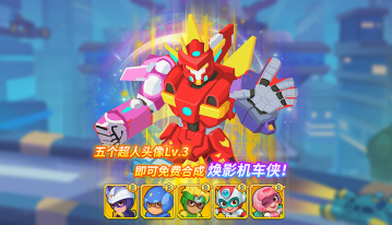 活动期间,集齐5名超人头像,即可免费激活「焕影机车侠」载具皮肤!开心超人合体载具,势必可共同抵御大大怪的侵袭,保卫星球!