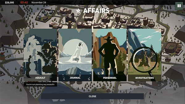 《这就是警察2》是一款有着类似《荒野大镖客》风格的冒险解谜手游。在游戏中,玩家将化身一座地处寒冷艰苦环境的边境城镇的警官。既然是解谜游戏,那么你上任后,各类案件自然会纷至沓来。但这款手游的乐趣并非仅局限于解谜,你还能够管理自己的警局。要知道,警局里说不定除了那些混日子的片警,还隐藏着黑帮的眼线呢!