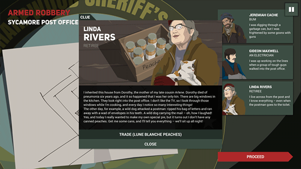 搜集证据,研究案件材料,审问嫌疑人(或者使用更……强硬的方法)并将罪犯送往审判。如果嫌疑人是清白的怎么办?也许这时你就该看看有没有可以收买的尖木镇法官了。