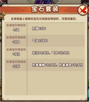 4、宝石套装:全身装备上镶嵌的宝石达到指定等级后,可激活属性。