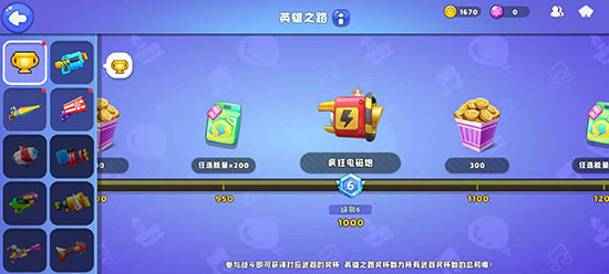 首先是第一种,在冠军之路里的奖励,诸如品质优良的史诗级危险高压枪、拳皇手套,以及稀有级的疯狂电磁炮等,都能在此获取。当然,品质越高,所需的奖杯数量也就越多。