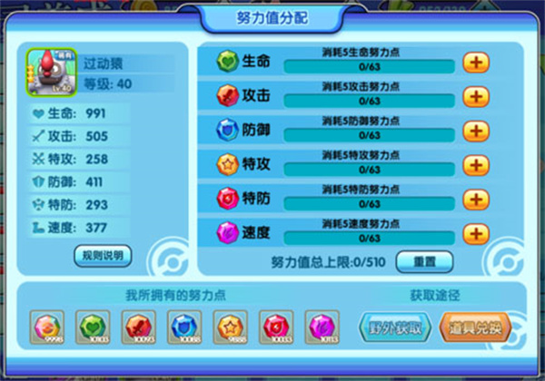 分配努力值的要求是玩家必须拥有相应的努力点,通过消耗努力点才能进行努力值的分配哟!每一只精灵都有属于自己的重点能力,请合理分配,务必记住哟~
