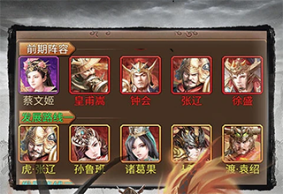 当然赵统和黄忠都是比较接近中期了,所以前期还是先用蔡琰+华雄挡在前面,然后用徐庶在后排猛击!