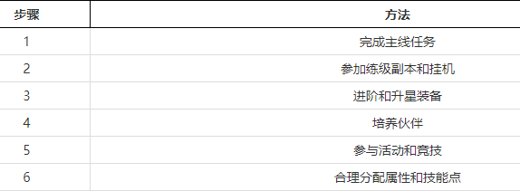 1. 完成主线任务:主线任务是游戏中提高经验和战力的主要途径。不断完成主线任务,可以获得大量的经验和奖励,同时解锁更多的剧情和活动。因此,务必按照主线任务的引导前进,不仅可以提升战斗力,还可以了解游戏世界的更多内容。