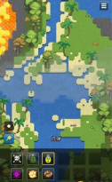 1这款手游采用2D像素美术风格,整体画面简洁。游戏开场没有冗长铺垫与繁杂引导,玩家直接置身于随机生成的世界。此世界中,海洋、陆地一应俱全,偶尔还能看到喷发的火山,颇具真实感。玩家通过手机放大屏幕,即可清晰查看地形地貌细节,这样的设计十分巧妙。