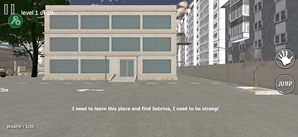 3、游戏中你的任务就是离开这里并找到萨布丽娜,左边屏幕操控角色的移动,右边为拾取和跳跃按钮