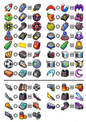 火箭、转盘、机器人、足球与砖头组合,伤害值极高,能带来大量伤害。其中,转盘具备挡子弹与击退的作用,火箭则是主要的攻击手段。足球堪称保护球以及射门的得力工具。
