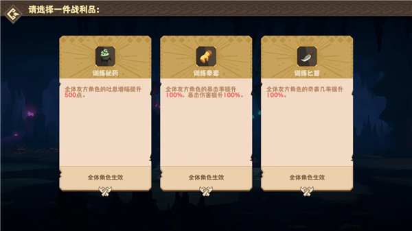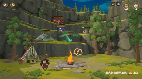 探险过程中我们会拾取到黄金松脂、金币或木材等;战斗胜利还可以获得勇气点数。而黄金松脂和勇气点数都可以帮助我们提升能力,以更好的状态御敌。