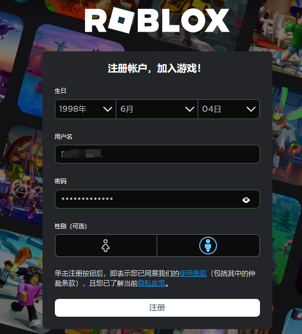 罗布乐思Roblox账号注册步骤如下: