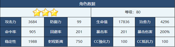 EX2费对单输出伤害,基础技能范围群体输出,被动加暴击,辅助技能一定概率加攻速。