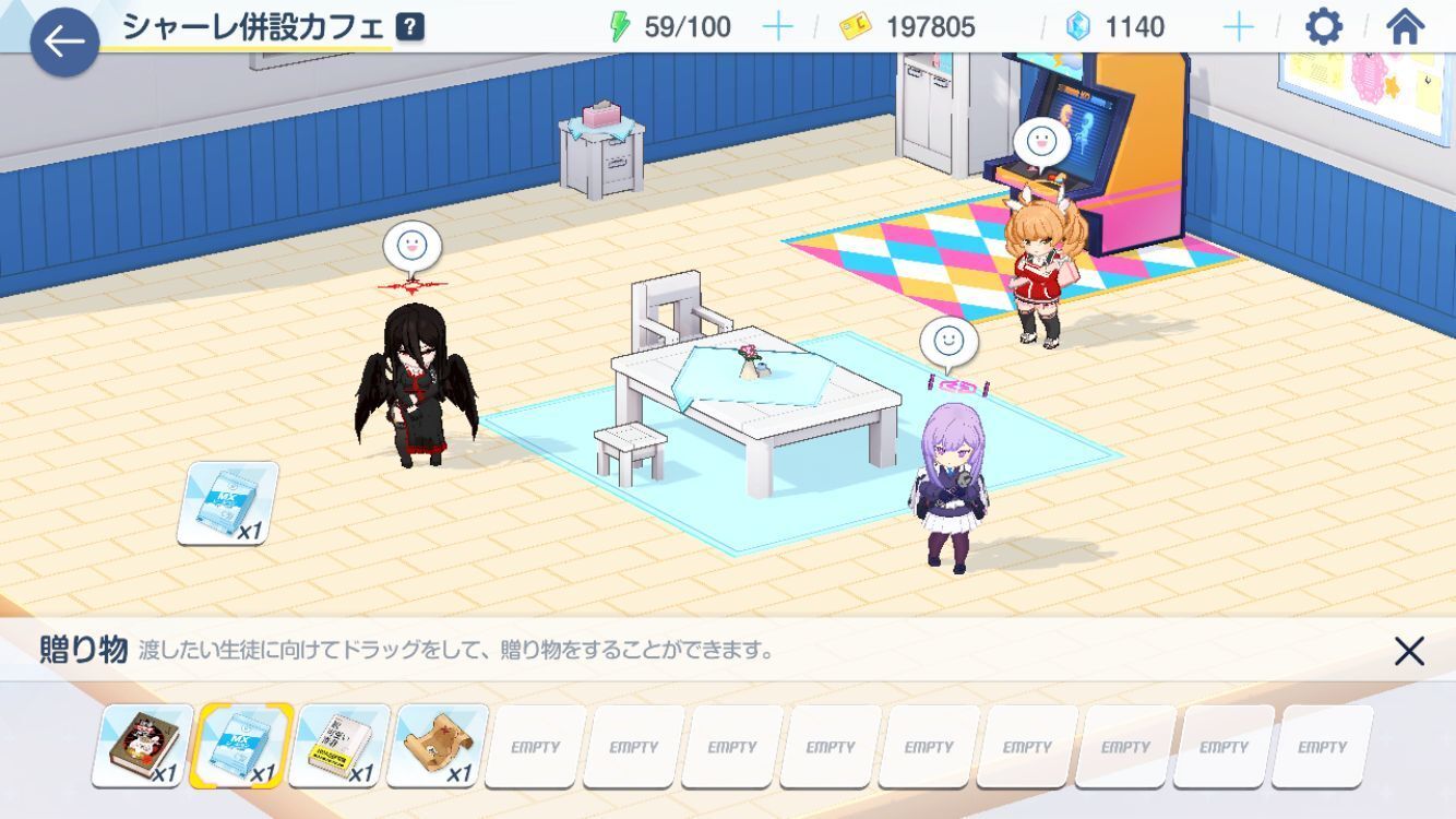 当学生踏入我们的咖啡厅,我们可通过赠送礼物来增进好感。不过,每个学生角色都有各自心仪的礼物,若赠送的是学生喜欢的礼物,所增加的好感度会远高于普通礼物。