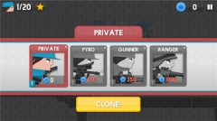 8、每次玩家死亡之后,小兵就会在原来的基础上多增加一个你选择的兵种,死的次数越多,克隆出来的小伙伴也就越多,而玩家只能控制一个带头兵;