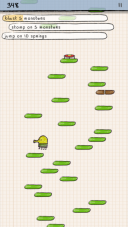 1在这款游戏里,玩家需要操控涂鸦弹簧小怪物持续向上跳跃。跳跃过程中,得留意破碎的平台、移动的蓝色平台、黑洞、不明飞行物以及坏人。而在行进途中,会出现能助力快速上升的火箭、竹蜻蜓、弹簧和弹簧鞋,要是处于宇宙版本,还会有大火箭。