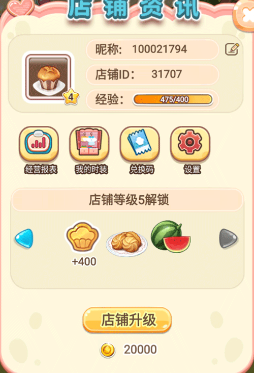 6、每当顾客享用完毕甜品,我们便能获得一定数量的金币与经验。金币的使用顺序,首先是满足店铺升级需求,其次用于店铺扩建,最后才考虑到商店购买一些甜品原料。