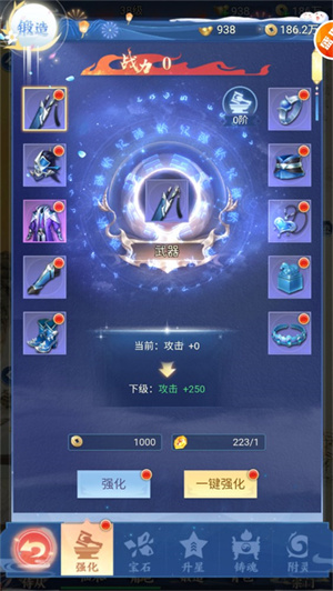 通过强化、锻造、洗炼和镶嵌,玩家可以对装备属性加强和重置,帮助玩家快速获得自己想要的装备属性,快速提升战力。