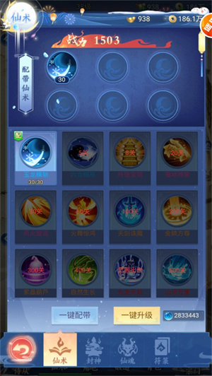 游戏中提供了大量的仙术,达到一定等级会自动解锁获得。