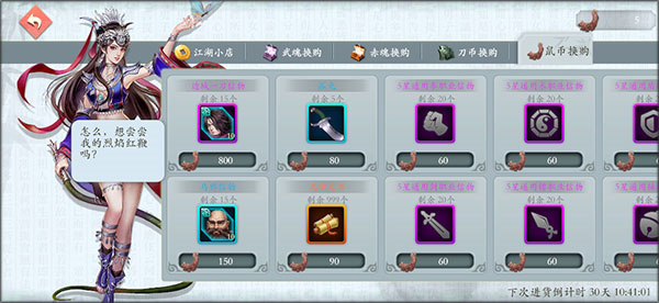 鼠币商店的货币是赤铜纹鼠,在物资副本掉落,商店也可以兑换5星和低星侠客,除此之外可以兑换侠客职业信物,这里推荐囤几本无字天书,因为是侠客打通督脉的必需之物,剩下的看自己需要兑换。