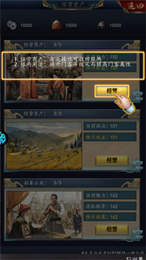 2、你需要管理王朝的各个方面,包括政治、经济、军事等。合理安排国家资源,提升国力,确保王朝的兴盛。