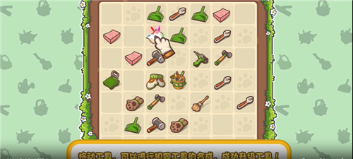 小栗可不想再像在大城市打工时那般辛苦啦!在游戏里,你仅需动动手指,把相同的两个道具两两合成,就能获得全新的工具哟!这些可都是修缮大树庄园不可或缺的道具呀!
